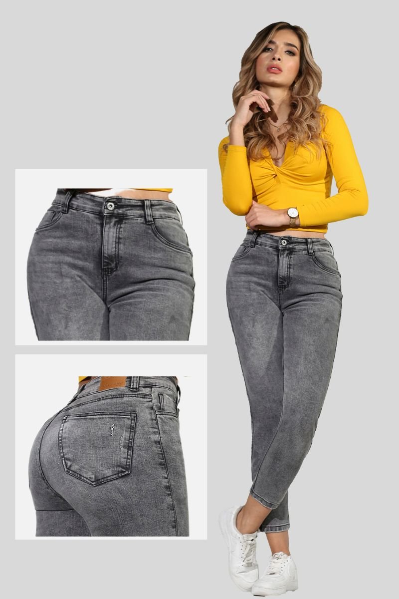 Si buscas estilo relajado con un toque moderno, este Jean Gris Mom Fit es tu mejor opción. Ideal para crear looks casuales con actitud.