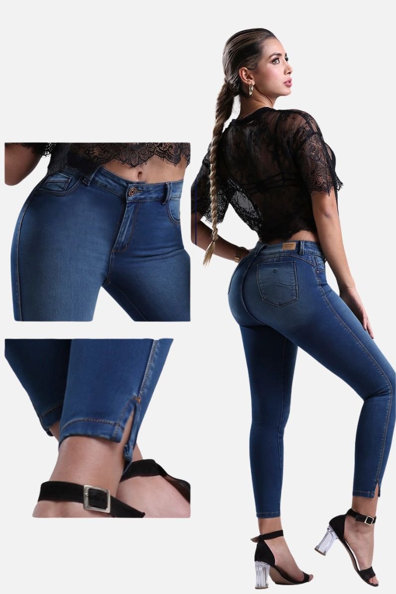 Eleva tu estilo con este jean skinny de tiro alto que combina diseño moderno, comodidad y realce de figura, este jean se adapta a tu cuerpo como una segunda piel. Su efecto moldeador en glúteos y abdomen te hará lucir espectacular sin sacrificar confort.